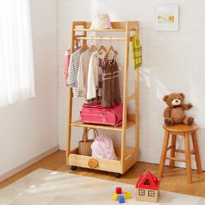 通園・通学の服や持ち物をしっかりしまえるハンガーラック。天然木製で、程よい高さ、丸く仕上げた角など子どもに優しい気配り仕様。キャスター付きで移動が簡単にでき、お掃除しやすい点も見逃せません。オープンで圧迫感のないナチュラルなデザインが魅力。奥行きのある上棚やランドセルが置きやすい3段階の可動棚も便利。それぞれに転び止めの背板付き。天然木製のハリネズミモチーフがワンポイントになった最下段は、散らかりやすいおもちゃや遊び道具などを収納しやすいボックス型。また、ハンガー位置は手前と奥に付け替え可能。両サイドのフックも高さを2段階に変えることができ、お子さまの成長や置き場所に合わせて調節できます。こちらの商品は「夏休み!すくすく成長キャンペーン」エントリー対象商品です。抽選で30名様に豪華プレゼント!2015年8月31日(月)17時まで【エントリー】はコチラ≫≫ …
