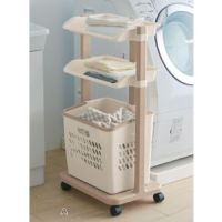 取り外せるバスケット付きこの商品は、ベルメゾンネットだけでのご提供です。カタログでは販売しておりません サニタリーでタオルやパジャマを置くのに便利な棚と、脱いだ服を入れるのに便利な、取り外せるバスケットが付いたランドリーラックワゴン。下段のバスケットは通気性の良いメッシュ調で、さらに持ち手が付いているので持ち運ぶ時にも便利。軽くてお手入れの楽な樹脂製の本体は、キャスターが付いているからお掃除の時などもラクに移動できます。ベージュとナチュラルの可愛いツートンカラーで、サニタリーが一気にオシャレな雰囲気になりそう。