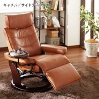 頭部・背もたれ・脚部の3か所リクライニングこの商品は、ベルメゾンネットだけでのご提供です。カタログでは販売しておりません 肌の当たる部分に、しなやかで肌触りの良い本革を使用。ゆったり上質なくつろぎのひと時が過ごせるパーソナルチェアです。頭部は手動で角度の調節が無段階に可能。背もたれは加重してリクライニングし、お好みの角度に両サイドのレバーで固定することができます。さらに油圧式シリンダーを使用した脚部のリクライニングは無段階。本を読んだり、テレビを観たり、うとうとしたりの姿勢をそれぞれ調節できるのが魅力です。本体は360度回転するので、立ち座りもラク。カラーは「キャメル」と「ブラック」の2色。それぞれ取り外し可能な木製のサイドテーブル有りか無しかのタイプを選べます。販売価格が41,040円(税込)以上で大型商品送料(特大)がかかる家具は「不要家具引取サービス」をご利用いただけます。対象エリアは、全国 ※沖縄、離島および一部地域除くサービスとなります。