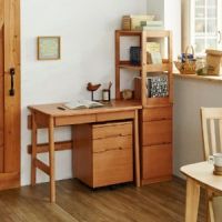 広いスペースで使うこともできる伸長式は長く使えるのもポイントカタログでは販売しておりません 天然木の突板を使用した、落ち着いた風合いの学習机です。一般的な学習机に比べてコンパクトなサイズで設計されているので、リビング学習にもぴったり。ナチュラルにはアルダー材、ブラウンにはウォルナット材を使用して、お子様が大きくなっても長くご愛用いただけるよう、落ち着いた佇まいに仕上げています。天板は設置スペースに合わせて、奥行を3段階に伸長可能。引出は2杯備え、うち一つはカギ付き。木製の削りだしペントレイも付いています。カラーは、ナチュラルとブラウンの2色をラインナップ。同シリーズのワゴンやオープンラックもご用意していますので、是非合わせてお使いください。ワゴンを使用する場合は幅105cmタイプをお選びください。