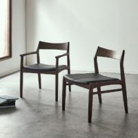 デザインと素材に加え、こだわったのはゆったりとした座り心地この商品は、ベルメゾンネットだけでのご提供です。カタログでは販売しておりません ゆったりとした広めの作りが心地よい、シンプルなデザインのチェア。ウォルナット材の突板と無垢材を使用し、美しい木目を生かし落ち着いた風合いに仕上げています。座面の張地には、お手入れ簡単な合皮素材を使用。クロスデザインのステッチを施しアクセントを添えています。また一見直線的なイメージもありながら、緩やかなカーブや曲線を多用し、やわらかなフォルムに仕上げているのも、魅力のひとつ。ひじつきとなしの2タイプをご用意しています。2019年9月2日(月)まで!その他の大型商品送料無料キャンペーン対象はコチラ≫≫